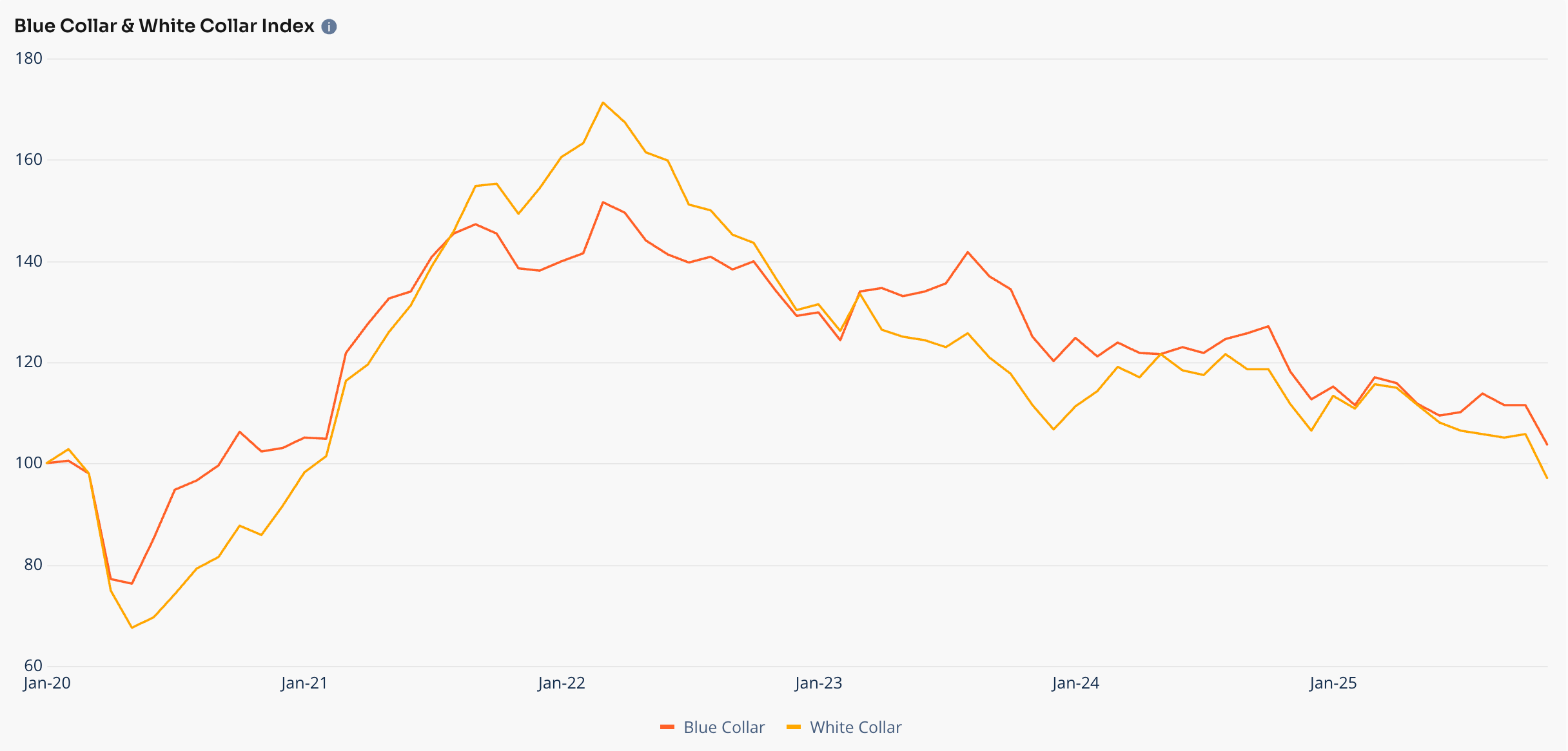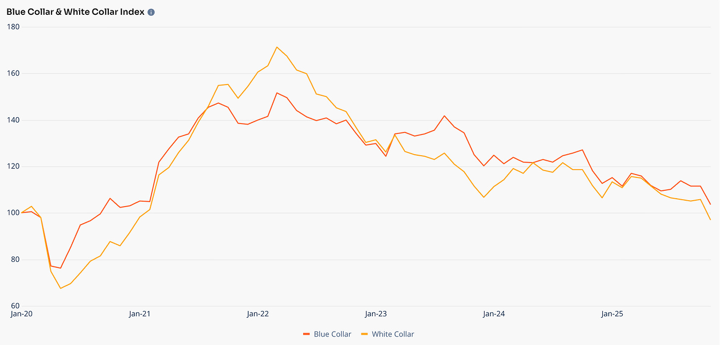 We’ll provide more extensive commentary in our next post (hopefully in the next day or two) but the short version, not surprisingly, is that the deterioration we’ve highlighted for the past few months is accelerating rapidly. As we noted on Halloween, the job market has moved well beyond ‘softening’ or ‘cooling’ and is now crumbling quite rapidly.